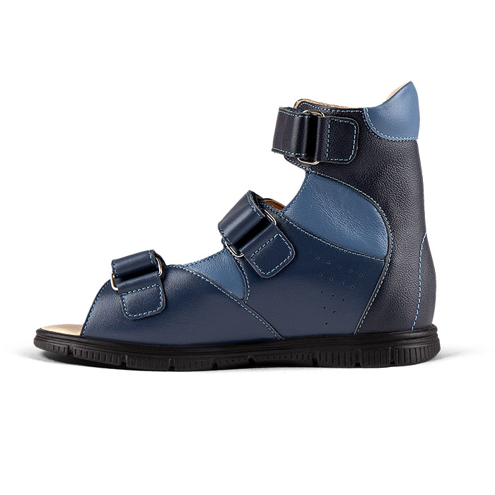 Детские ортопедические туфли летние (сандалеты) предназначены для детей со плоско вальгусной установке стоп II степени, при других деформаций стоп. Обувь отличается наличием специальных ортопедических деталей. К таким деталям относятся: подошва специальной формы, жесткий задник особой конструкции, ортопедические стельки.
